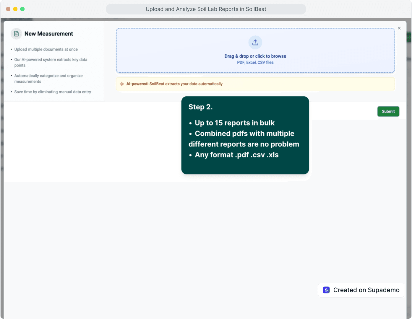 With the SoilBeat SoilBalance Calculator you move from soil analysis to fertiliser shopping list in one guided flow – no spreadsheets required. Upload your PDFsoil tests and the calculator will: