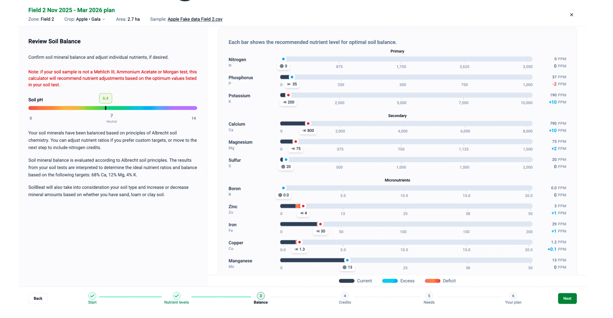 Calculates mineral balance using Albrecht soil chemistry principles.