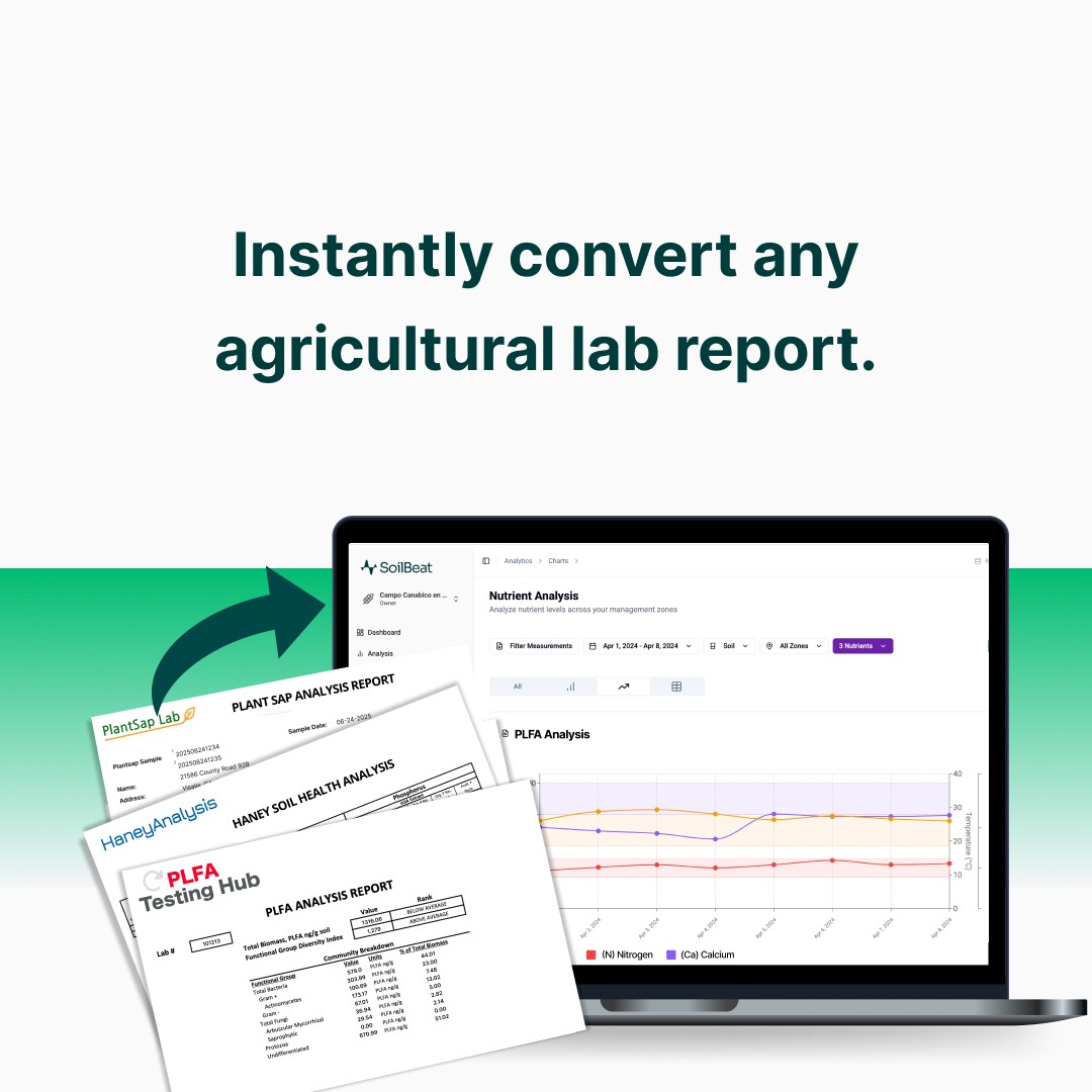 Soil and leaf reports are full of valuable information — if you can decode them. SoilBeat does it for you, flagging nutrient levels that are too low or too high, and helping you make smarter decisions faster. Whether you’re a farmer or agronomist, SoilBeat helps you upload, standardize, and explore all your soil and plant data in one place.