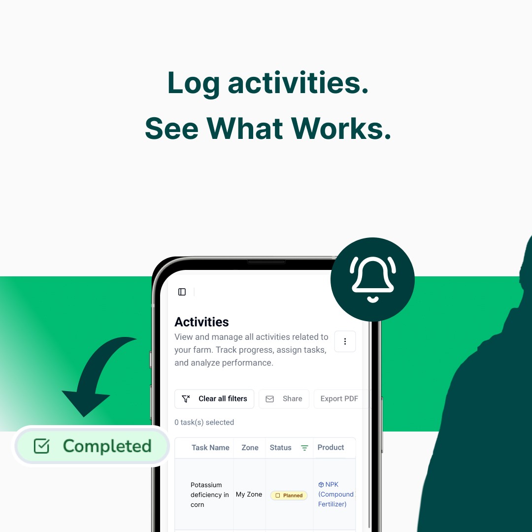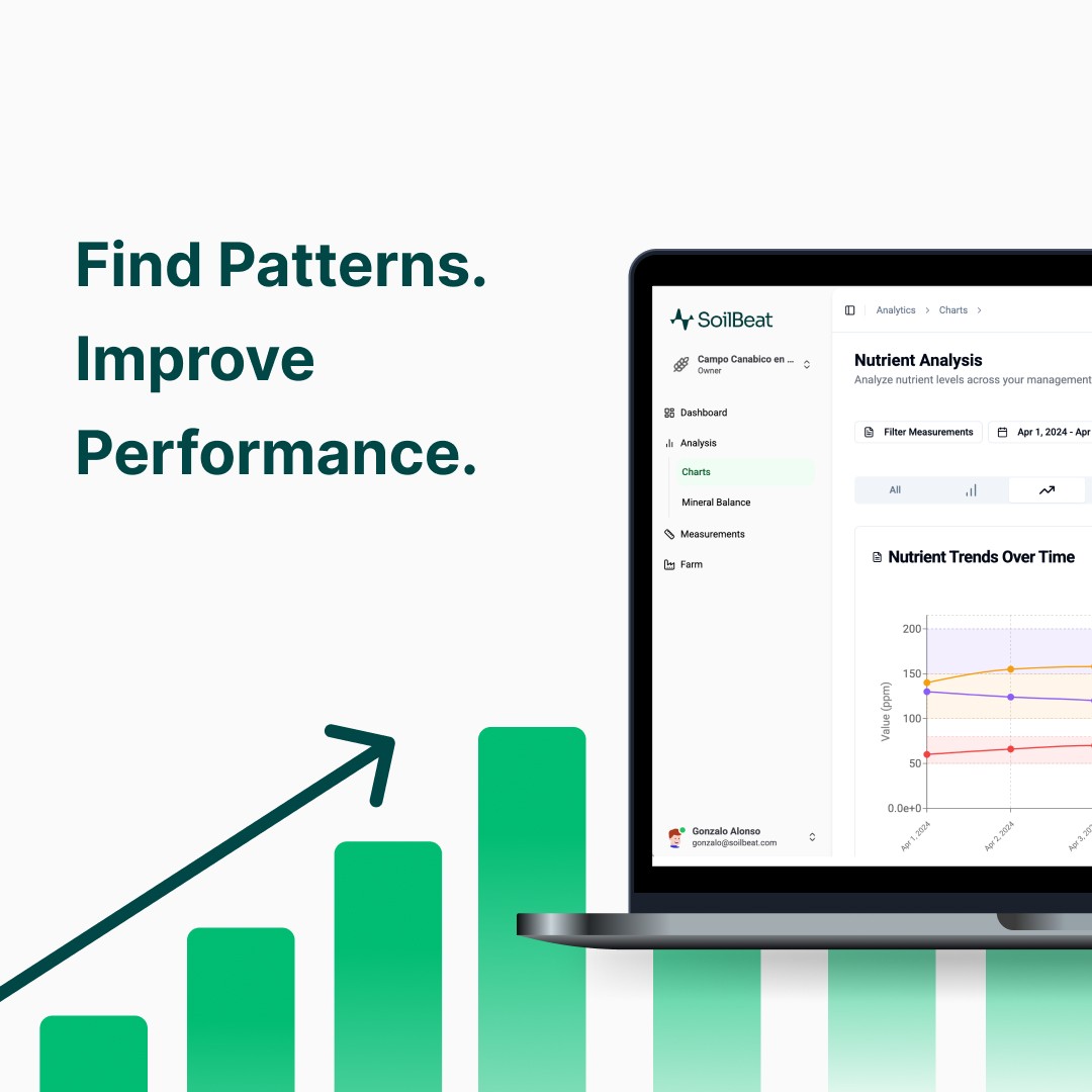 Go beyond diagnostics — evaluate the impact of your decisions. SoilBeat lets you compare how different fields, seasons, crops, and nutrient strategies perform over time. Analyze trends, track responses to fertilizer applications and other field actions, and identify which practices drive better soil health and crop outcomes — all without messy spreadsheets.