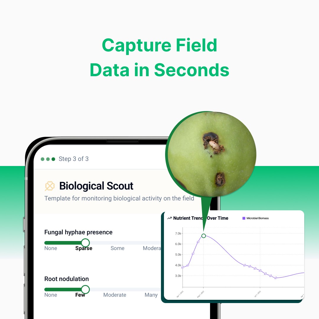 Data in agriculture is often scattered across files, notebooks, and spreadsheets. SoilBeat brings it all together—soil, sap, tissue, biology, silage, water tests, scouting notes, prescriptions, and field activities—assigning every data point to the right farm and management zone.